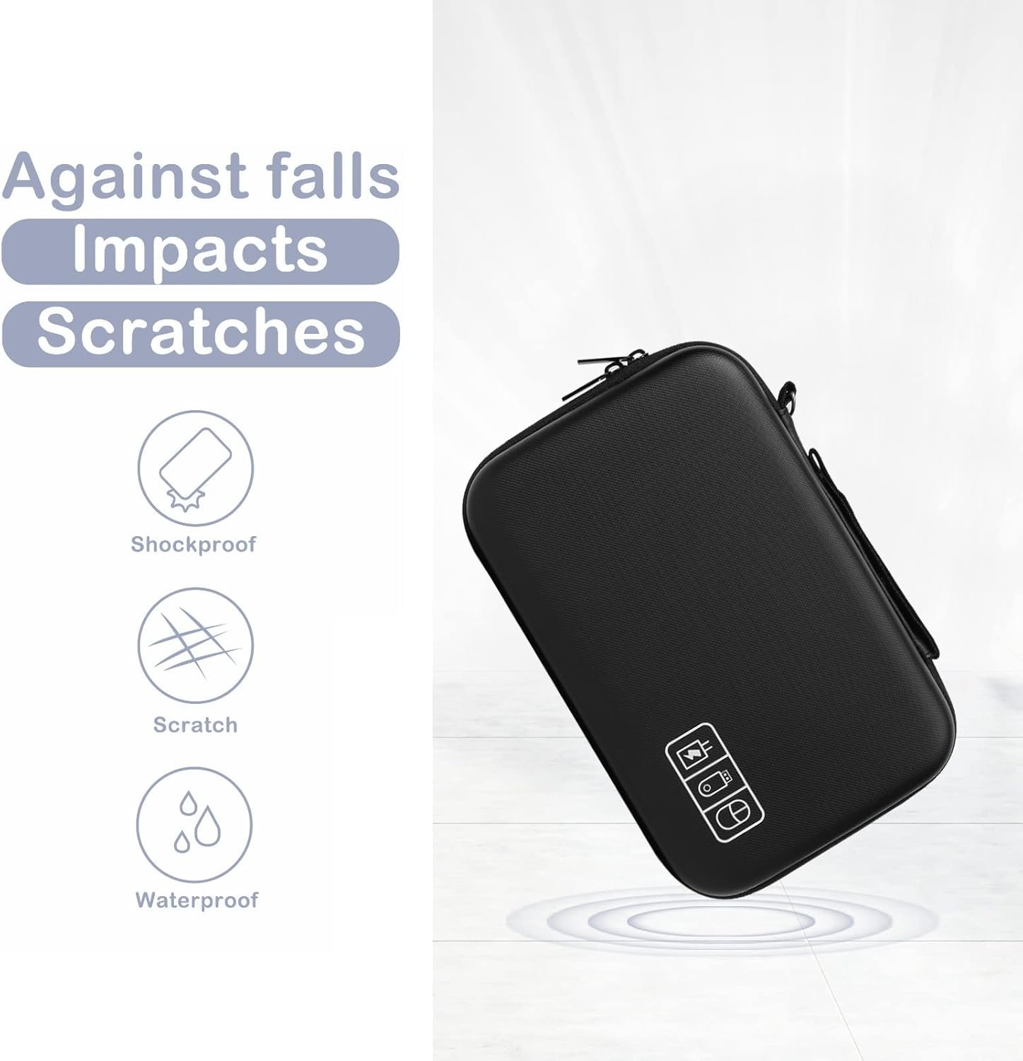 Made of durable EVA material with PU leather exterior, shockproof, dustproof and waterproof. Soft velvet filled interior can prevent your electronic accessories from scratch and damage.