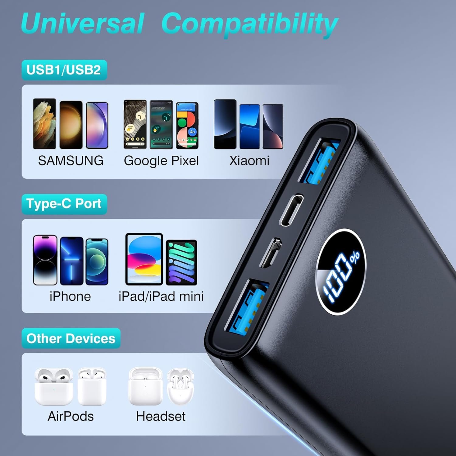 【Universal Compatibility & Powerful Capacity】Portable phone charger with 25800mah battery. Our Battery Pack is compatible with most electronic devices on the market like various cell phones, headphones, tablets, etc.Best emergency battery pack for iPhone Pro 15, 14, 13, 12, Samsung S23 S22 S21, S20, Airpods and more.