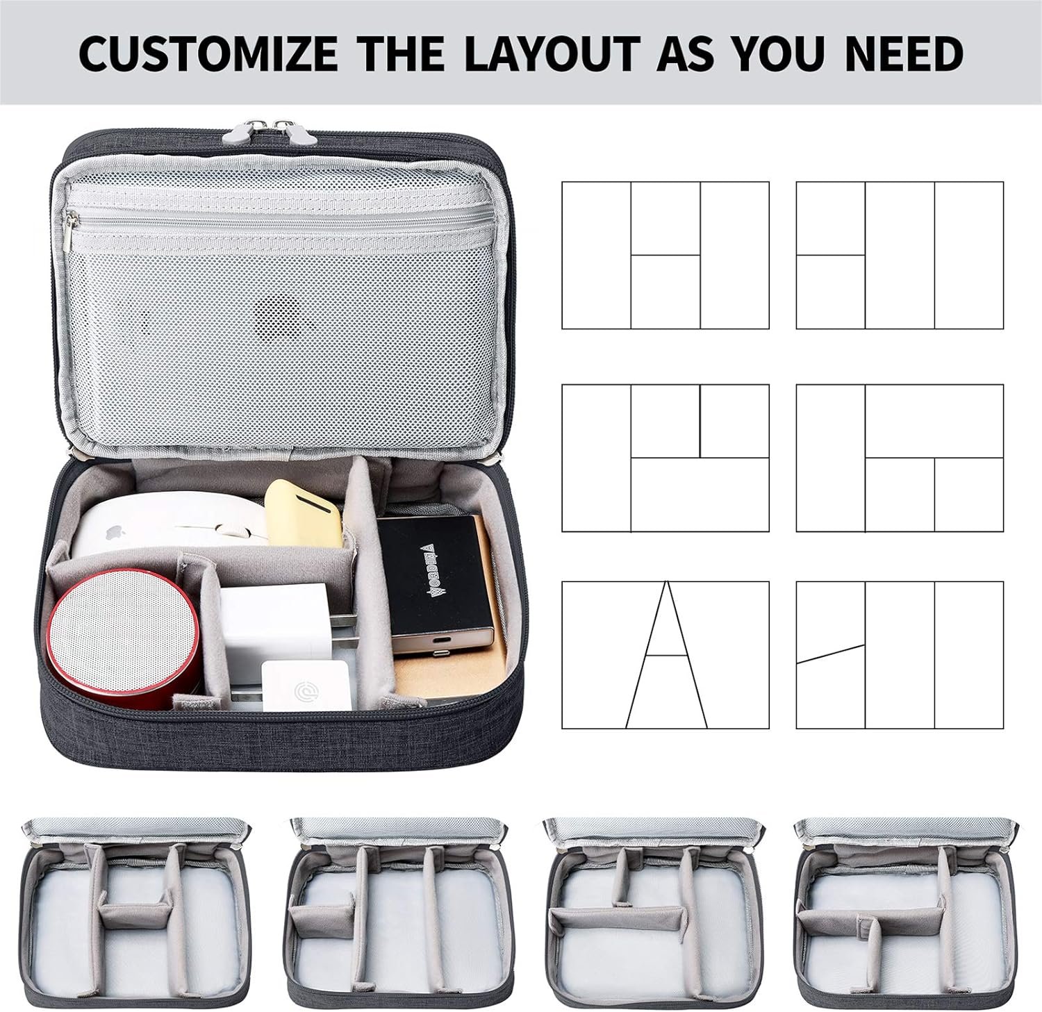 【DIY & LARGE CAPACITY】- Gadget storage cases has 3 removable padded dividers, so you can design the layout as you wish to keep all your electronic travel accessories in perfect order.